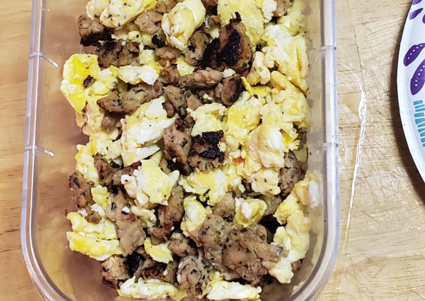 - Now in a bowl you plan to serve from mix scramble eggs with chicken brescheta. Mix well so you may get a good bite of egg and chicken together.